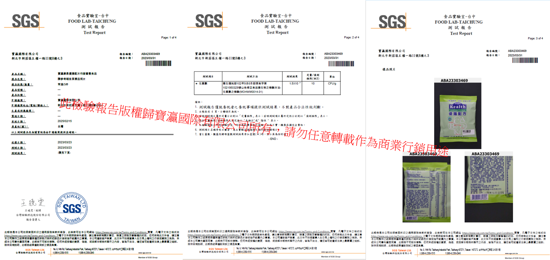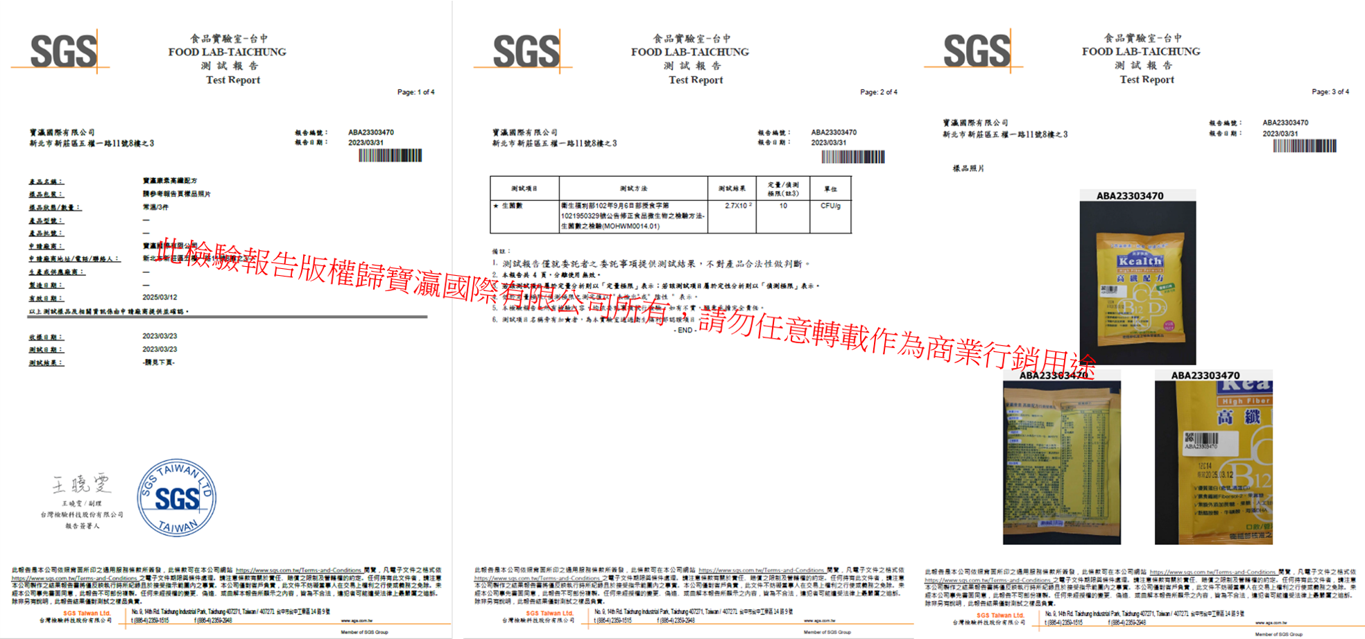 產品檢驗報告版權歸寶灜國際有限公司所有,請勿任意轉載作為商業、行銷或其他用途,違者將交付公司委任律師事務所處理