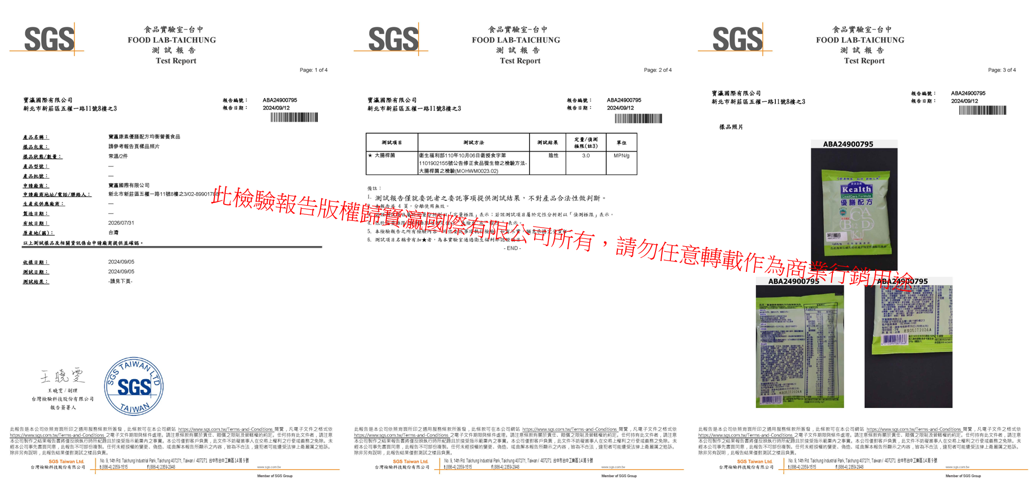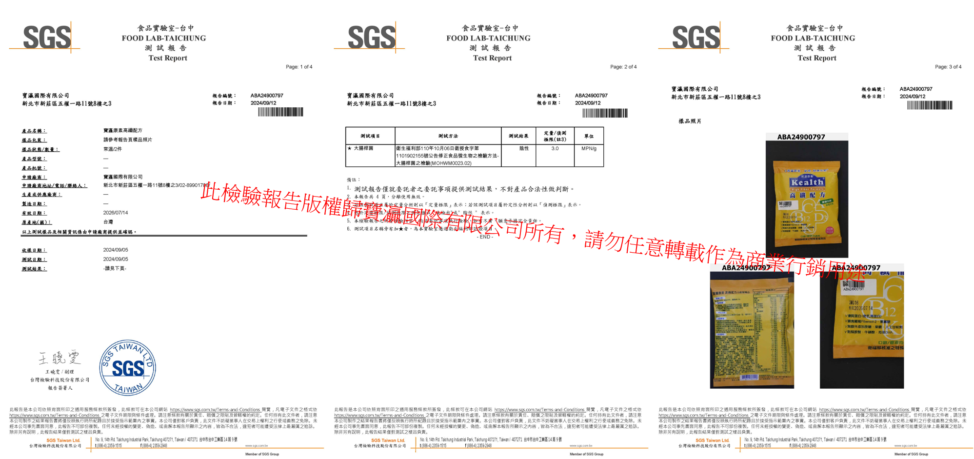 寶灜國際有限公司所有產品皆通過國家規範衛生安全標準,定期自行送至食品工業發展研究所、SGS等機構檢驗,並投保產品責任保險